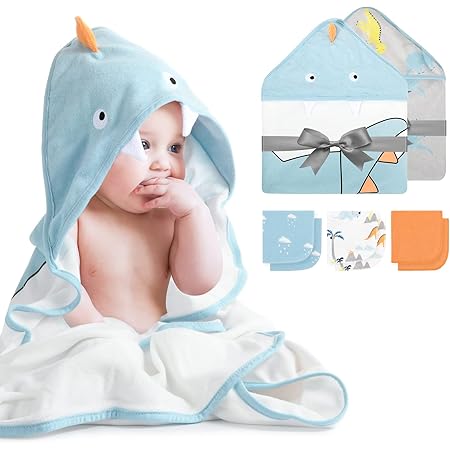 Amazon Com Baby Hooded Towel Momcozy 8 Piece Baby Bath Towel For Boys Or Girls Baby Towel And Washcloth Set With Cute Design Baby Shower Towel Gift For Newborns Infants And Toddlers Blue